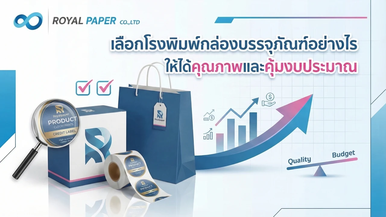 บทความนี้ Royalpaper จะพาไปดู 7 วิธีเลือกโรงพิมพ์กล่องบรรจุภัณฑ์แบบไม่พลาด พร้อมเช็กลิสต์สำคัญที่ควรถามก่อนสั่งผลิต เพื่อให้คุณเลือกพาร์ทเนอร์ได้เหมาะกับทั้งแบรนด์ งบประมาณ และเป้าหมายทางธุรกิจค่ะ หากกำลังมองหาข้อมูลเกี่ยวกับ กล่องบรรจุภัณฑ์ หรืออยากดูบริการที่เกี่ยวข้องอย่าง ฉลากสินค้าและสติกเกอร์ ควบคู่กัน ก็สามารถดูรายละเอียดเพิ่มเติมได้ค่ะ
